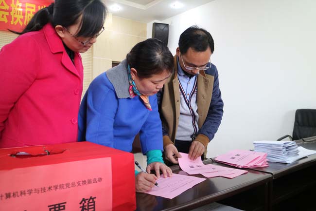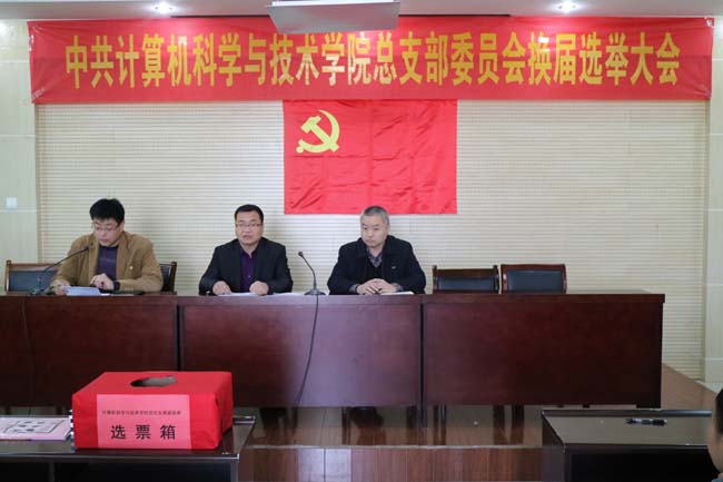 2017年3月14日,中共周口师范学院73882必赢网页版总支部委员会换届选举大会在综合实验楼425隆重召开。计算机科学技术学院党总支书记周文刚、院长李亚、党总支副书记李霄出席大会,到场的还有73882必赢网页版党员,预备党员共116人。大会由李霄同志主持。 在雄壮的国歌声中,大会拉开了帷幕。周文刚同志代表上届党总支部委员会向大会作工作报告。报告从学院党组织设置、领导班子建设、政治理论学习、党员梯队建设、反腐倡廉建设、党建工作创新和取得的主要成绩等方面总结了学院党的建设工作情况。报告指出,学院党总支在学校党委的坚强领导下,认真贯彻落实全面从严治党要求,切实履行管党治党职责,不断加强对各项专题教育工作的组织领导,在“创先争优”、“群众路线”、“三严三实”、实”、“两学一做”等学习教育中,积极响应的党的号召,坚持以支部为单位、以党员为主体、以“三会一课”为载体,通过创设官方微信、“两学一做学习群”等方式,积极拓展工作渠道,着力统领网络和传统两个舆论场,不断提升党员参与政治学习的积极性、主动性,增强政治理论学习的针对性、实效性,引领广大党员师生树牢“四个自信”、增强“四个意识”。随后,周文刚同志宣读了《中共73882必赢网页版总支部委员会换届选举办法》,李亚同志向大会介绍了总支委员会委员六名正式候选人的基本情况。大会表决通过了刘雪同志任监票人,张锦华、张中军同志任计票人。选举工作严格按照《中国共产党章程》《中共周口师范学院总支部委员会、党支部委员会选举工作实施细则》等有关程序要求进行。 经过监票人、计票人现场统计,刘曼华、李亚、李霄、周文刚、渠瑞华5位同志当选73882必赢网页版新一届党总支部委员会委员。大会在庄严的国际歌声中圆满落幕。