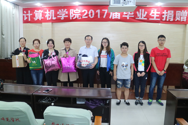 6月10日上午,73882必赢网页版在综合实验楼425会议室举行了“毕业生捐赠”仪式。计算机学院院长李亚,党总支书记周文刚,党总支副书记李霄以及捐赠物品的计算机学院毕业生代表们冒雨参加了此次活动。