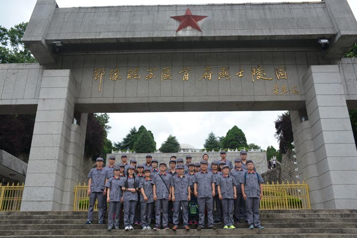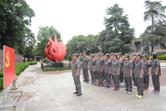 鄂豫皖苏区首府烈士陵园。当时新县人口不足10万人,有5.5万人献出了生命,其中革命烈士3.5万余人。烈士们长眠于此,为了中华民族的解放事业贡献出自己的生命。大家来到这里,在烈士纪念碑前缅怀烈士,感受红色精神。随后参观了烈士纪念堂,烈士墓地,革命斗争史陈列室等地,怀着对烈士们的敬意参观学习,并在忠烈广场举行了重温入党誓词活动。
