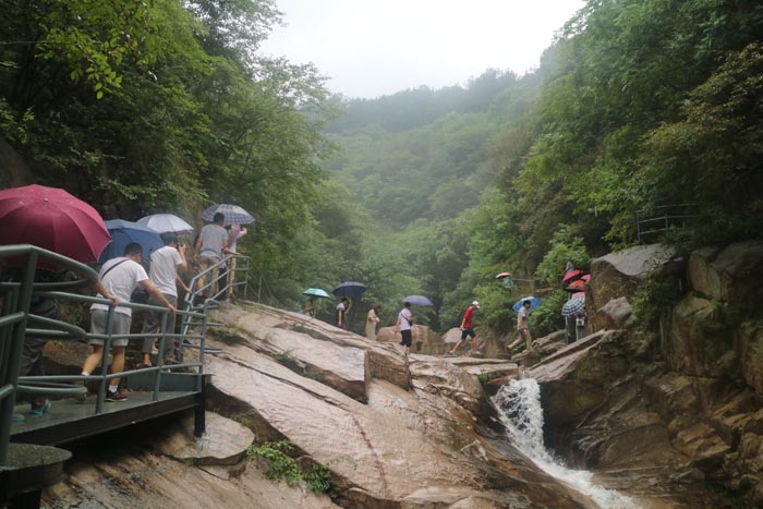 7月7日抵达新县后,大家稍作休整便开展以“革命先驱,矢志不渝”为主题的教育活动。“重走志仁小道”是大别山干部学院体验式教学的一部分。该小道位于新县连康山景区内的一条沟涧之中,全程3.5公里,是以新县第一位共产党员、鄂豫皖革命根据地牺牲的首位县委书记——王志仁的名字命名的小路。 大家充分发挥不怕困难、团结互助、迎难而上、敢于胜利的革命主义精神,克服山高林密、地势陡峭、道路崎岖,蛇虫袭扰等各种困难。经过2个多小时的雨中跋涉,胜利完成体验教学任务。