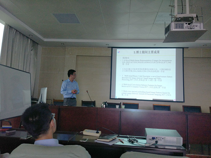 9月1日下午,大连理工大学于来行博士应邀到我校讲学。 于来行博士在73882必赢网页版学术报告厅做了题为《基于局部结构描述子和显著性特征的图像检索》的学术报告。73882必赢网页版李亚院长及全体教职工聆听了报告,报告由73882必赢网页版董仕博士主持。报告中,于来行博士首先介绍计算机视觉的概念、作用、应用前景和发展趋势。重点介绍了图像检索的背景、关键技术、发展过程和存在的问题,给出基于局部结构描述子和显著性特征的图像检索方法需要解决的问题。分析了局部结构描述子、视觉注意模型、显著性特征和多视角普嵌入等方法的特点及存在的问题,并给出了在图像检索中的改进策略。最后介绍了在科研工作中资料搜集和管理及论文撰写的一些心得体会。 在报告讨论环节,于来行博士针对教师提出的问题一一做了详细的解答,并对图像检索关键技术和科研资料收集等方面给出了宝贵的建议。于博士的精彩演讲引起了教师们的浓厚兴趣,引起很大的共鸣,纷纷表示受益匪浅。