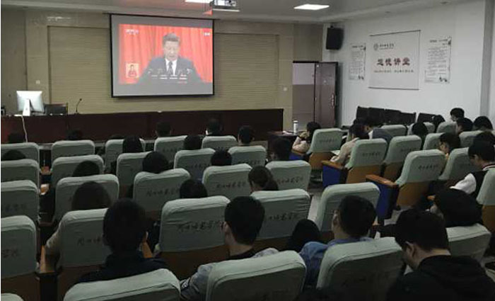 10月18日上午9:00,中国共产党第十九次全国代表大会在北京开幕。73882必赢网页版组织师生党员干部分别在综合实验楼307实验室、425会议室集中收看开幕会实况直播,认真聆听、学习习近平总书记代表十八届中央委员会向大会所作的题为《决胜全面建成小康社会夺取新时代中国特色社会主义伟大胜利》的报告。 师生党员干部在收看十九大开幕会盛况后心情激动,深受鼓舞。大家一致认为,党的十九大是在全面建成小康社会决胜阶段、中国特色社会主义发展关键时期召开的一次十分重要的盛会。习近平总书记代表十八届中央委员会所作的报告不仅为党和国家事业的新发展绘制了美好前景,也为党和国家各项事业的新发展指明了前进方向,反映了人民群众的共同心愿。大家纷纷表示,要立足本职岗位,继续努力工作和学习,坚决在政治上、思想上、行动上与以习近平同志为核心的党中央保持高度一致,积极为党的领导、国家建设、社会和谐、学校发展做出积极贡献。