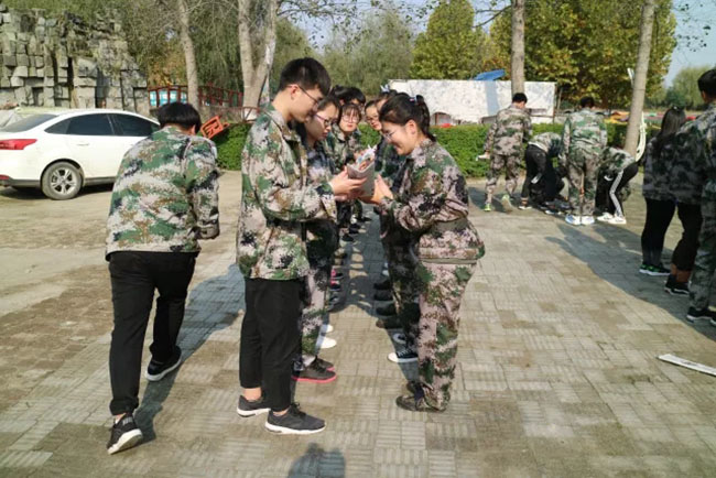 本次素质拓展以小组为单位,共设置了军训培训、激情节拍、感恩教育、毕业墙等七个拓展项目。看似简单的游戏,却需要每个成员的共同努力、相互配合、彼此信任,就是在这简单的“实践中学习”过程中,同学们团结合作、集思广益、克服困难,每名同学都认真对待、全情投入,共同战胜一道道难题,一个个难关。