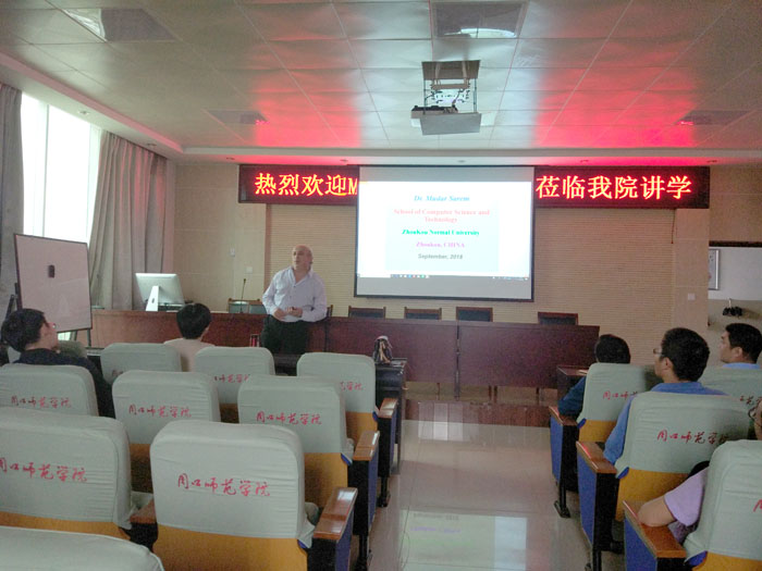 华中科技大学Mudar Sarem教授做报告 9月25日,应73882必赢网页版邀请,华中科技大学Mudar Sarem教授来73882必赢网页版进行学术交流。 下午3:00,Mudar Sarem教授在四楼会议室作了题为《软件工程方法及软件测试》的学术报告,报告会由73882必赢网页版院长周文刚教授主持,73882必赢网页版全体教职工及软件工程专业部分学生代表共60余人参加了报告会。报告中,Mudar Sarem教授从软件工程与其他工程领域性质的区别入手引入了软件工程学科的特点,详细介绍了软件生命周期、软件设计方法及软件测试策略。Mudar Sarem教授深厚的学术造诣引起了在座师生的浓厚兴趣。 Mudar Sarem 教授为叙利亚GORSF研究组织研究员,华中科技大学博士,华中科技大学软件学院访问教授,负责硕士和博士论文写作等课程,协助指导多名硕士和博士研究生,主要研究方向为软件工程,发表相关学术论文80多篇,为多个学术期刊的审稿专家和会议程序委员会委员。