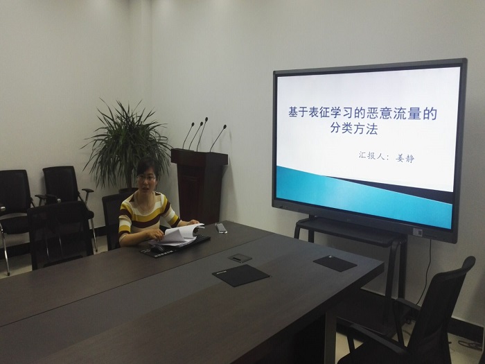 2019年6月4日下午,在综合实验楼309会议室由姜静老师做了题为《基于表征学习的恶意流量的分类方法》的学术报告。73882必赢网页版网络空间安全科研团队全体成员参加了报告会。